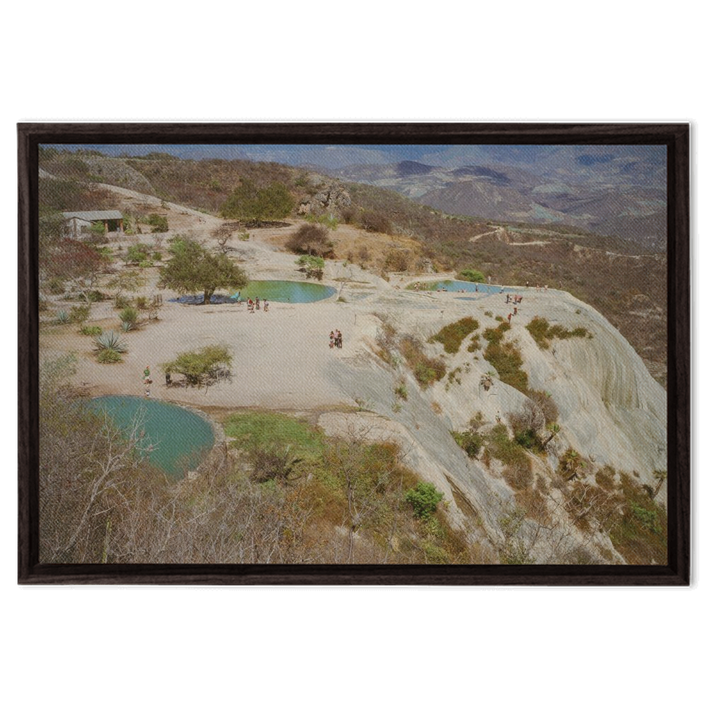 Vintage world travel. Shot on film and printed digitally, this epic photo of Hierve el Agua is inspiring in scale, and calming in palette. Create a window to the world with unique photographic wall
