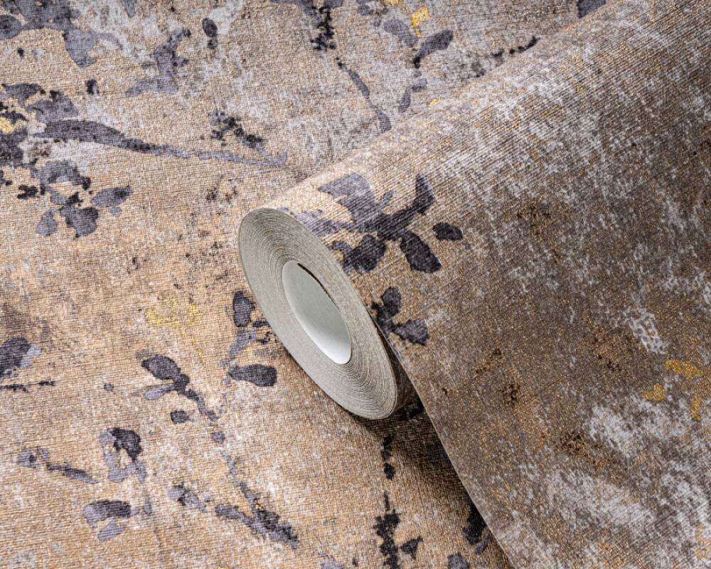 Floral Watercolor Faux-Fabric Wallpaper in Brown/Grey/Gold