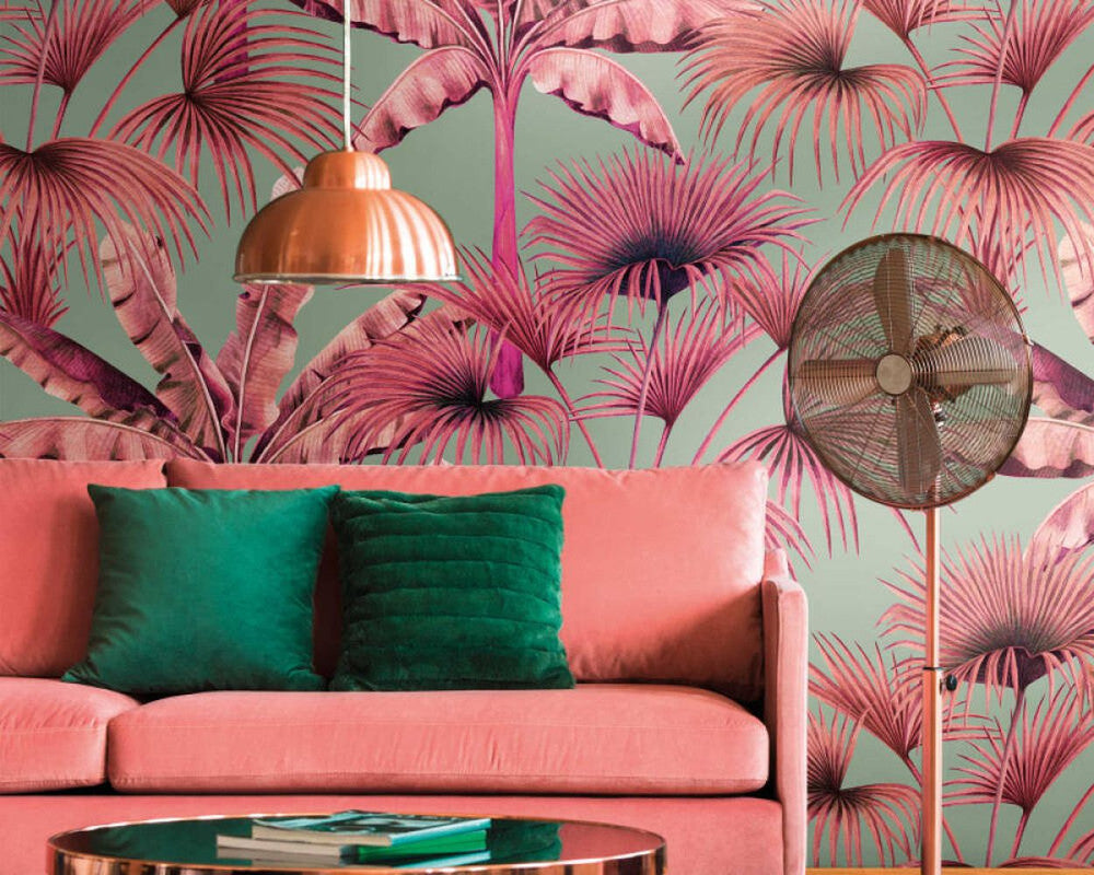Zoe Tropical Wall Mural in Blue/Pink